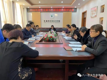 根据学校《关于做好2020年度基层党组织书记抓党建述职评议考核工作的通知》要求,12月28日下午,学院在生物馆1061会议室召开党委扩大会议,开展2020年度党支部书记抓党建工作述职评议考核。学院领导班子、党委委员、党支部书记、党员代表及民主党派人士代表参会,会议由公司党委副书记王利娥主持。