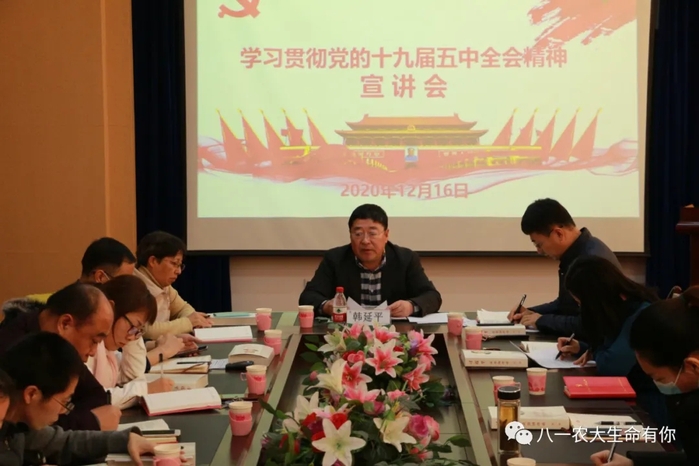为深入学习贯彻党的十九届五中全会精神,准确把握全会的精神实质和核心要义,12月16日下午,校纪委书记韩延平深入公司,以《读懂五中全会“定位定标定法”的三大逻辑》为题,作了一堂精彩的专题宣讲报告。学院领导班子、党委理论学习中心组成员、党支部书记、生物科学系教工党支部全体党员参加宣讲会,会议由公司党委书记姜楠主持。