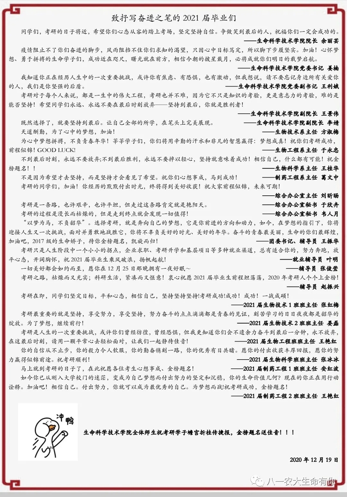 公司领导、系主任、综合办、全体辅导员和全体毕业班班主任寄语2021届毕业生一句话,汇成一封信,饱含老师们的殷切希望和美好祝福。