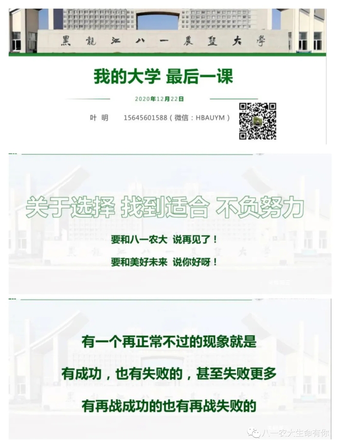 《我的大学 最后一课》通过当前老员工比较熟知丁真、王冰冰等人为切入点,树立对未来笃定、对生活热爱和脚踏实地努力的价值观;介绍2017至2020届毕业生就业去向及当前发展现状,包括考研复试和调剂、企业求职、西部计划、三支一扶、特岗教师、事业单位、征兵入伍和选调生等方面就业指导和策略分析。