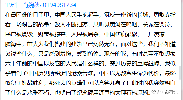 现在的中国是前人历经磨难,不畏险苦,拼出来的。作为当代新青年应继前人之志,不忘初心,砥砺前行。为建设祖国贡献自己的青春理想,为实现中华民族的伟大复兴贡献自己的青春力量。