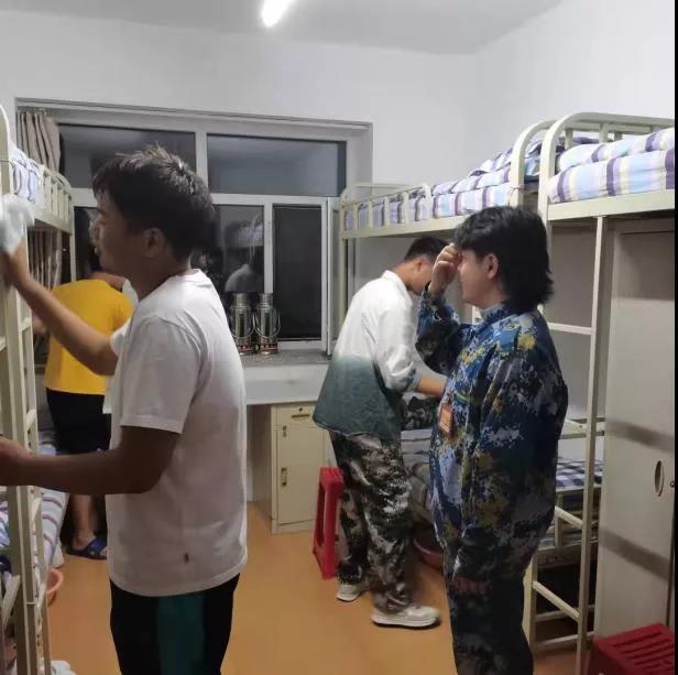 在员工骨干的指导下,大一同学逐渐熟练,越来越向着学院要求的方向整理内务,床铺平整,物品摆放规范,室内整体干净,在大家的共同努力下,内务整理工作取得显著效果。