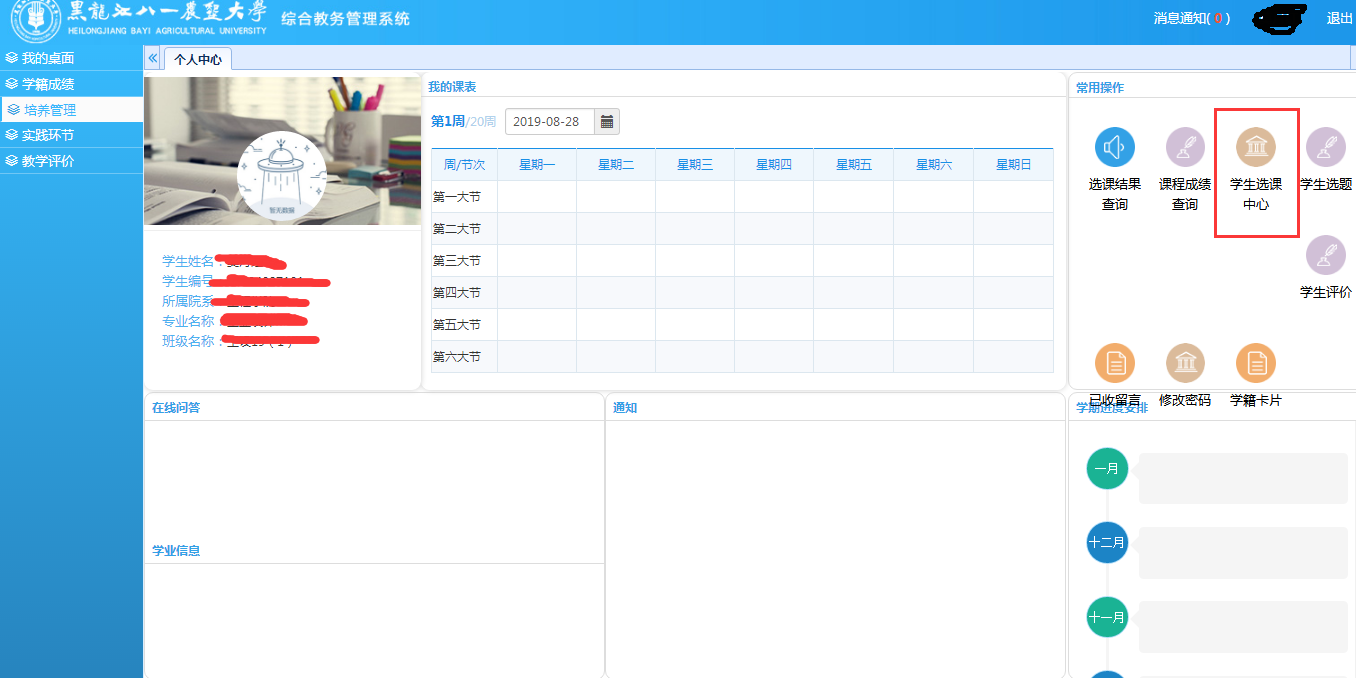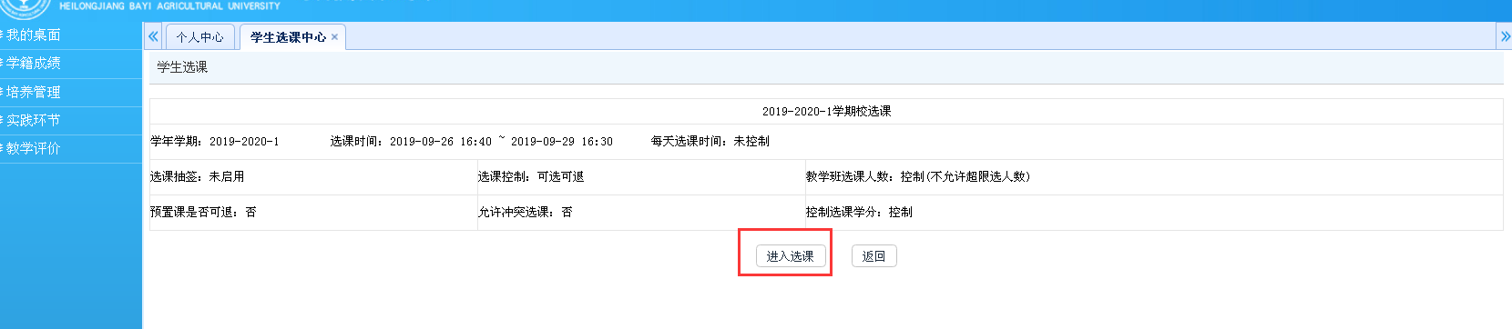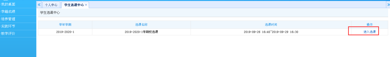 进入选课中心(如下图),点击“进入选课”按钮,进行选课。