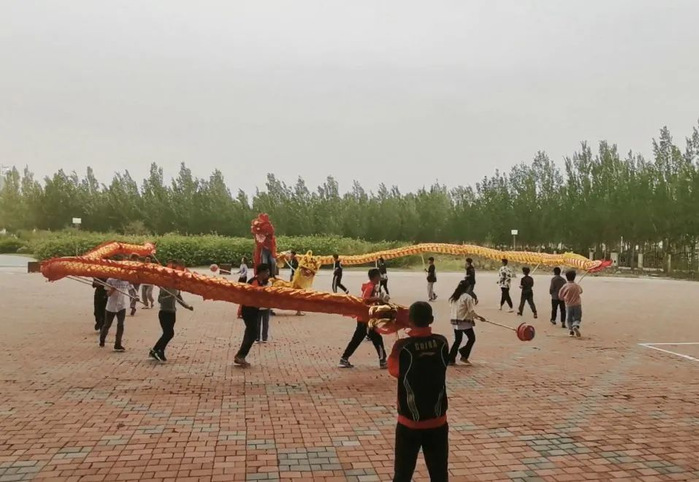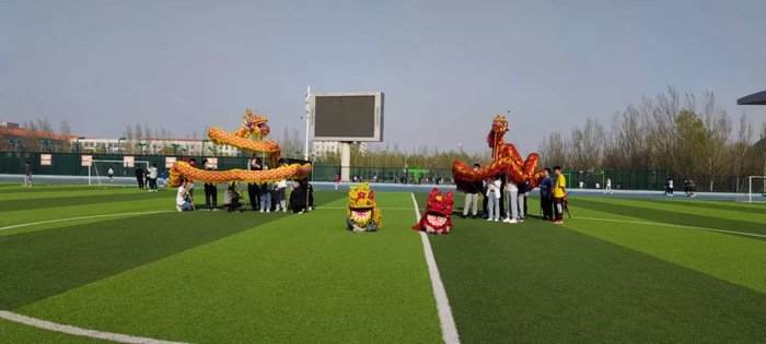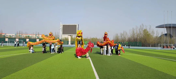 锣鼓声声,龙狮起舞,龙狮迎吉祥,瑞气满校园。伴随着阵阵锣鼓声,两只活灵活现的狮子昂首阔步而来,只见它们身着彩色霞披,时而跳跃、时而嬉戏,动作神态惟妙惟肖;身后长龙随着音乐鼓点的快、慢、轻、重,忽而翘首仰视,忽而回首匍伏,千姿百态,妙趣横生。龙在中华民族代表了吉祥、尊贵、勇猛,更是权力的象征,狮子则外形威武,动作刚劲,神态多变。龙狮象征着兴旺和吉祥,富有浓厚的民族色彩和独特的传统艺术性。龙狮精神更是一种不屈不挠、勇于拼搏、奋发努力、知难而上的精神,舞龙狮运动也塑造员工们相互配合、团结协作,坚韧不拔、吃苦耐劳,乐观积极、不懈奋斗的精神特质,同时也是对中华民族文化遗产的一种弘扬与继承。