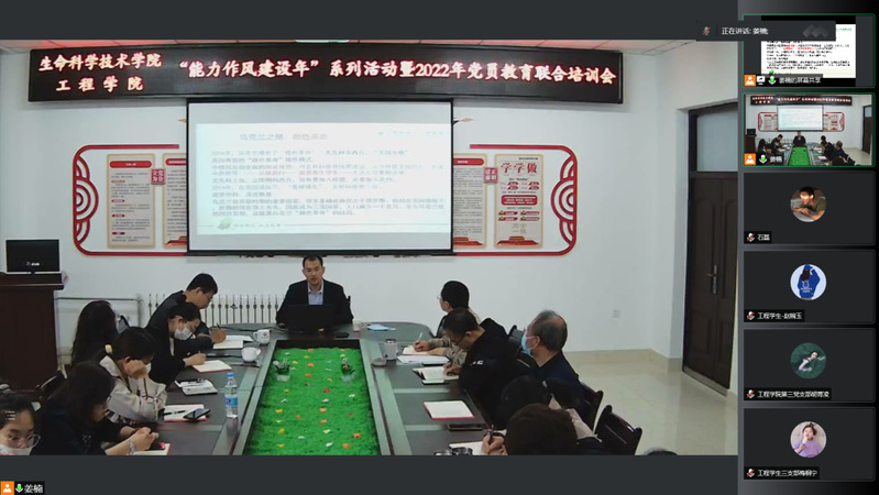 为深入贯彻落实学校“能力作风建设年”活动推进大会精神,引导全公司党员强学习、提能力、转作风、作表率,5月26日下午,公司党委组织开展“能力作风建设年”系列活动暨2022年党员教育第二期联合培训会。学校马克思主义学院形势与政策教研室主任、黑龙江省垦区宣讲团成员张方成老师担任主讲,公司党委书记姜楠主持,学院领导班子、党支部组织委员、宣传委员及员工党员代表线下参会;其他师生党员,2022年新确定积极分子腾讯会议线上参会。