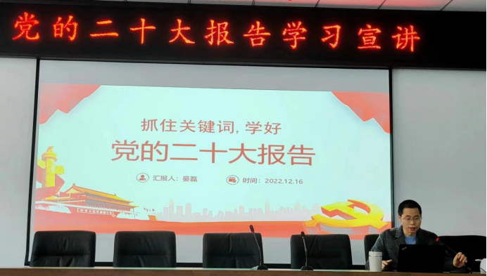 为全面深入学习贯彻党的二十大精神,把全公司党员干部和师生员工的思想统一到党的二十大精神上来,把力量凝聚到党的二十大确定的各项任务上来,按照学校《学习宣传贯彻党的二十大精神工作方案》,12月16日上午经理晏磊为基层联系党支部生物技术教工党支部和生物科学教工党支部以《抓住关键词,学好党的二十大报告》为题开展党的二十大精神宣讲报告会。