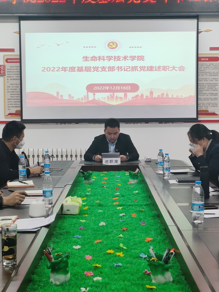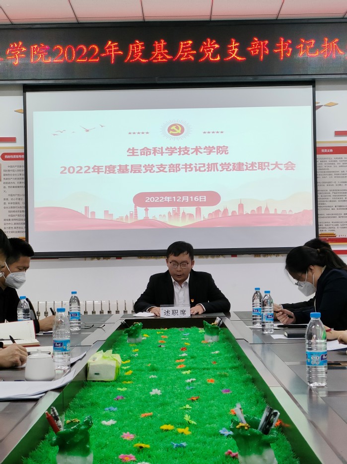 最后,姜楠对党支部书记抓党建工作提出了三点要求:一要在持续深化政治理论学习上下功夫。各支部要坚持以党的政治建设为统领,以学习贯彻落实党的二十大精神为主线,坚持不懈抓好新时代党的创新理论武装,把学深悟透做实习近平新时代中国特色社会主义思想作为必修课,把深化对“两个确立”决定性意义的领悟、增强“四个意识”、坚定“四个自信”、做到“两个维护”贯穿于支部党建全过程各方面。要以当前党的二十大学习为契机,引导全院师生充分认识党的二十大的重大意义,准确把握党的二十大精神的核心要义,深入推动习近平新时代中国特色社会主义思想和党的二十大精神入脑入心,教育引导党员加强理论武装,把理论学习成效转化为推动工作实效,做到知信行合一,学思用贯通。二要在促进基层党建工作提质增效上下功夫。各支部要牢固树立主责主业意识,持续推进全面从严治党各项要求向党支部纵深延展。要对照五化两增强和七个有力建设要求,全面推进党支部标准化规范化建设,进一步提升党支部党建工作质量。要统筹用好学院核拔党建经费,不断丰富活化“三会一课”“主题党日”等组织生活形式载体。要大力推进党支部品牌特色创建工作,打造可看可学可复制的示范党建品牌和党支部标准化规范化建设先进典型案例。三要在推动党建与业务工作深度融合上下功夫。各支部要紧密围绕学院发展大局,紧盯十四五指标任务和年度重点任务,深入推进党建工作与业务工作深度融合,在学院改革发展新阶段中,引领党员在学院学位点周期性合格评估、生物与医药专业学位博士点申报、国家一流专业建设、新一轮本科审核评估筹备和毕业生就业攻坚等重点工作中,挑重担,显担当,展作为,以高质量党建引领学院中心工作高质量发展。