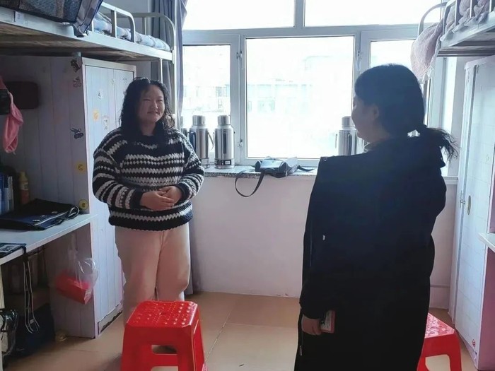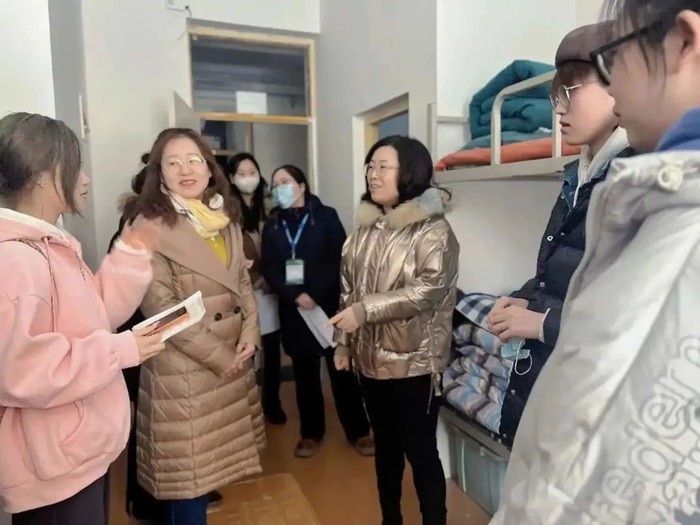 院领导认真耐心走访每一间寝室,了解新生住宿情况,亲切的与同学们交谈,询问同学们入学后是否适应,关心同学们的饮食起居等问题,叮嘱同学们遵守寝室管理规定,增强寝室生活安全意识,严禁使用违规电器。同时,在学习上对同学们提出了要求,寄予了厚望,鼓励大家规划老员工活,拥有精彩老员工活。因春天来临、气温上下波动,老师提醒同学们添衣服,注意保暖。