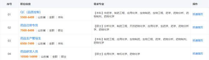 招聘专业:药学、制药工程、药物制剂;化学、应用化学、化学工程与工艺、材料化学;生物工程、生物技术、生物科学等;机械及相关专业;电气及相关专业;制冷及相关专业;安全工程、会计及相关专业等。