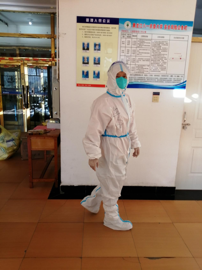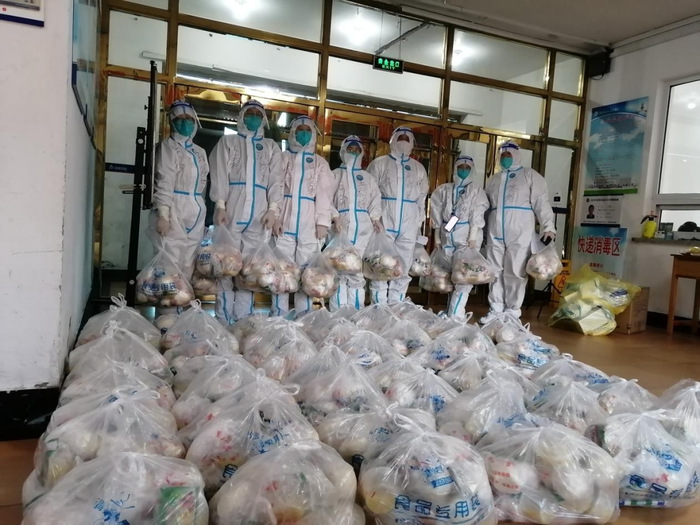 在员工返校期间,申贵男同志又加入校园疫情防控应急处置志愿服务队伍中,参与校园疫情防控志愿服务工作。为隔离观察的返校同学们配送餐饮,带去温暖。