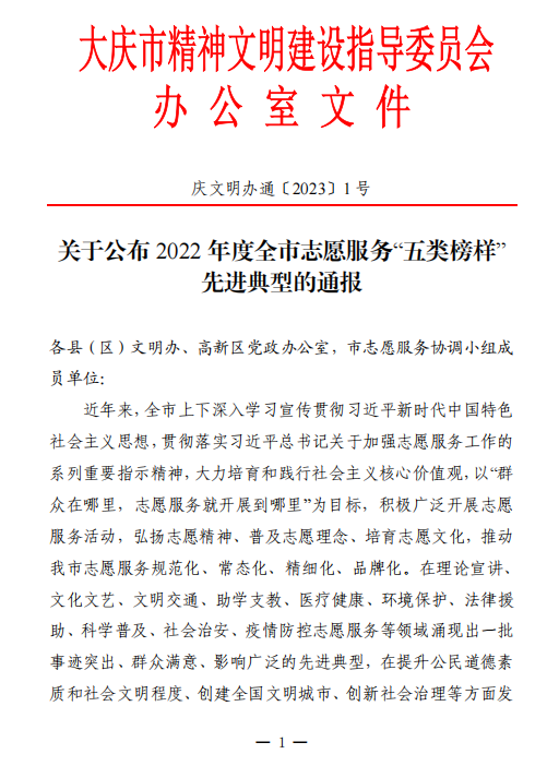 为崇尚先进模范、宣传典型事迹、营造浓厚氛围,激发全民共同参与志愿服务的热情,按照中央文明办、省文明办、市文明委年度工作安排,市文明办在全市组织开展了2022年度志愿服务“五类榜样”先进典型学习宣传活动。经过各县区、各单位广泛发动、择优推荐、综合评审等环节,结合省志愿服务联合会给予的年度嘉许,全市114名志愿者被推选为“优秀志愿者”,公司申贵男老师入选!
