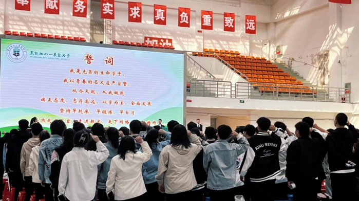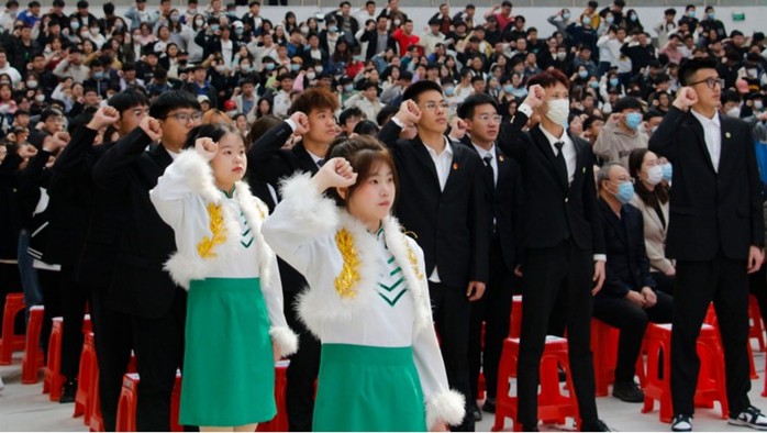 仪式在全体师生激昂的校歌声中拉开帷幕。