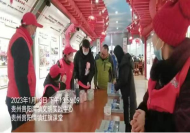 2023年1月18日起,黎月月,韩会两位成员开始执行多批次的志愿服务工作。他们来到了贵州省清镇市文明实践中心,进行志愿服务活动,服务累计覆盖约二百人;接下来,团队在毕节的社区志愿服务3天,他们看望了孤寡老人、指导了小朋友读书学习,清理了社区张贴的广告等。在实践过程中,尽管会遇到困难,会身体劳累,但是志愿者们虚心听教、努力干事,收获了心灵上的喜悦。