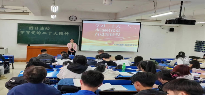 为深入学习贯彻习近平新时代中国特色社会主义思想和党的二十大精神,落实习近平总书记关于青年工作的重要思想,切实加强广大团员青年思想政治引领,为实现中华民族伟大复兴的中国梦贡献青春力量,引导广大青年厚植国家情怀,立志做有理想、敢担当、肯吃苦肯奋斗的新时代好青年,生命学院于2023年4月5日开展“学习二十大,永远跟党走,奋进新征程”主题团日活动,本次团日活动共有38个团支部共计1000余名团员青年参加。