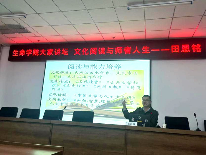 此次会议邀请全国优秀教师、龙江学者青年学者、黑龙江省教学名师、黑龙江省首批认定高层次人才田恩铭教授进行讲座,田教授以《文化阅读与师者人生》为题,从读书与教师身份、阅读与教师素养、阅读能力培养、阅读经验和感想等方面,用真实鲜活的案例深入浅出地为大家诠释了师德师风的真谛。整场讲座视野开阔、观点深刻,既有理论高度,又有实践深度,对于加强和改进新时代师德师风建设具有很强的针对性和现实性。最后晏经理号召广大教师牢固树立底线意识,坚守为党育人、为国育才的初心。讲座结束后,现场教师纷纷表示倾听讲座受益匪浅,与田教授合影留念。