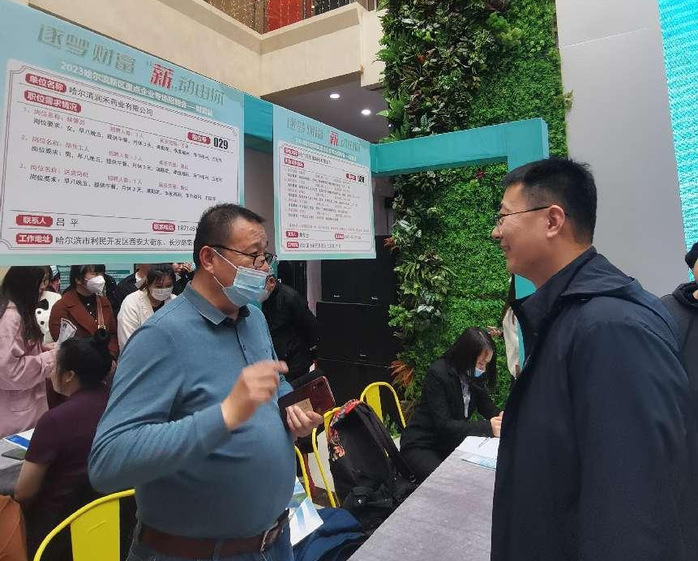 为贯彻落实全国、全省2023届普通高校毕业生就业工作会议精神,深入推进访企拓岗促就业专项行动,对接企业用人需求,拓宽毕业生就业渠道和资源,全力促进毕业生更加充分更高质量就业。2023年4月9日公司党委书记姜楠、党委副书记王利娥带领就业辅导员前往哈尔滨参加“哈尔滨新区重点企业招聘会”,此次招聘会由哈尔滨新区生物医药行业协会协办,其中26家企业是医药相关企业,经主动对接已与23家企业建立联系,收集岗位150余个。学院与哈尔滨吉象隆生物技术有限公司和哈尔滨派斯菲科生物制药有限公司建立了密切的联系以期进一步开展就业实习和“3+1校企协同育人”深入合作。