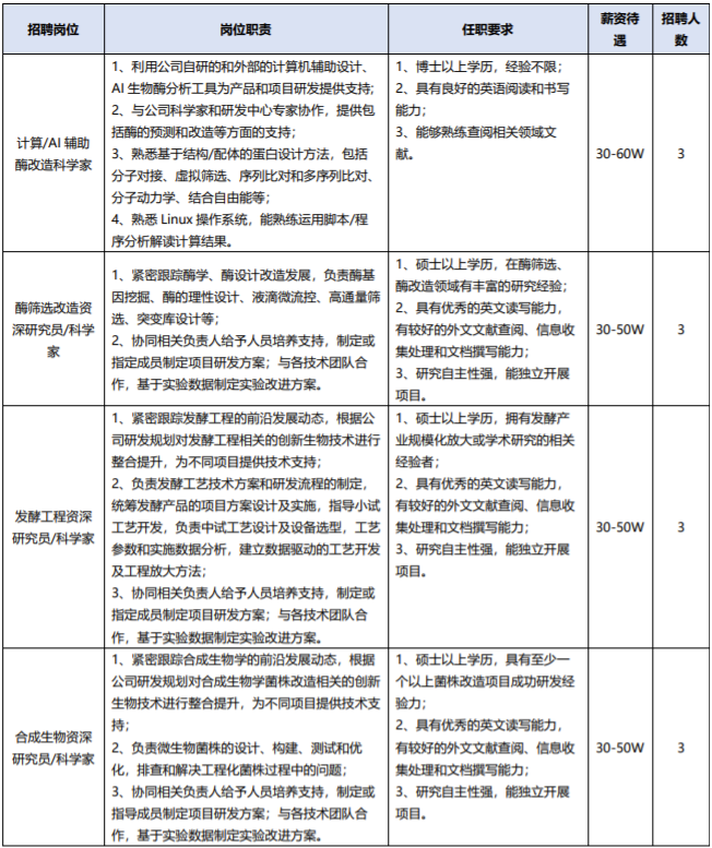 四、招聘岗位及要求