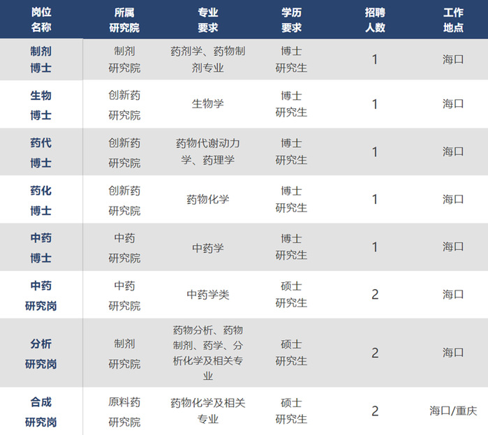 1.热爱科研工作,认同海南海药企业文化并能积极践行公司核心价值观;