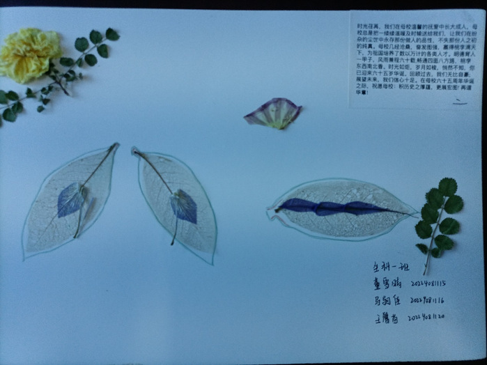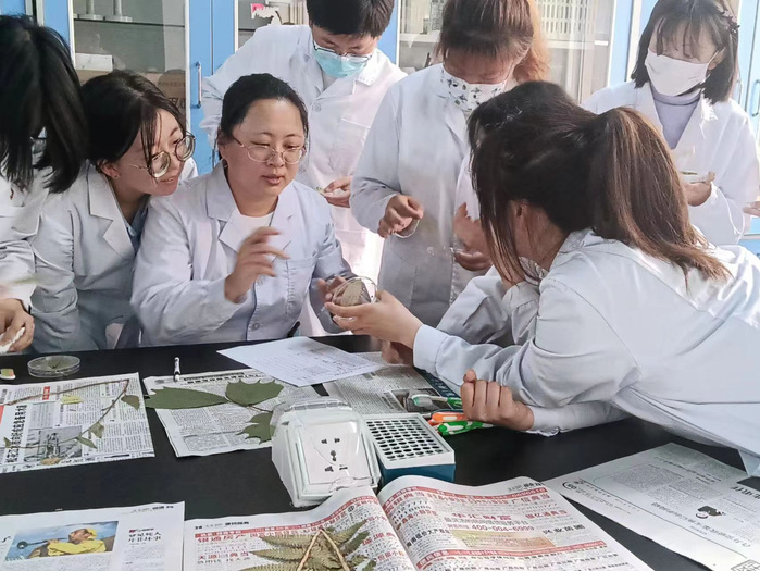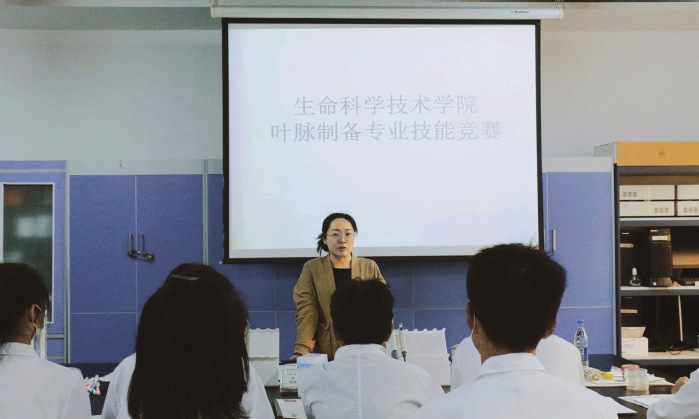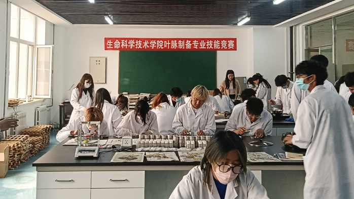 比赛过程中,同学们严格按照曹迪老师所讲授的制备步骤开展实验,所精心进行基础的叶脉制备,提升了专业认知和实验操作能力。