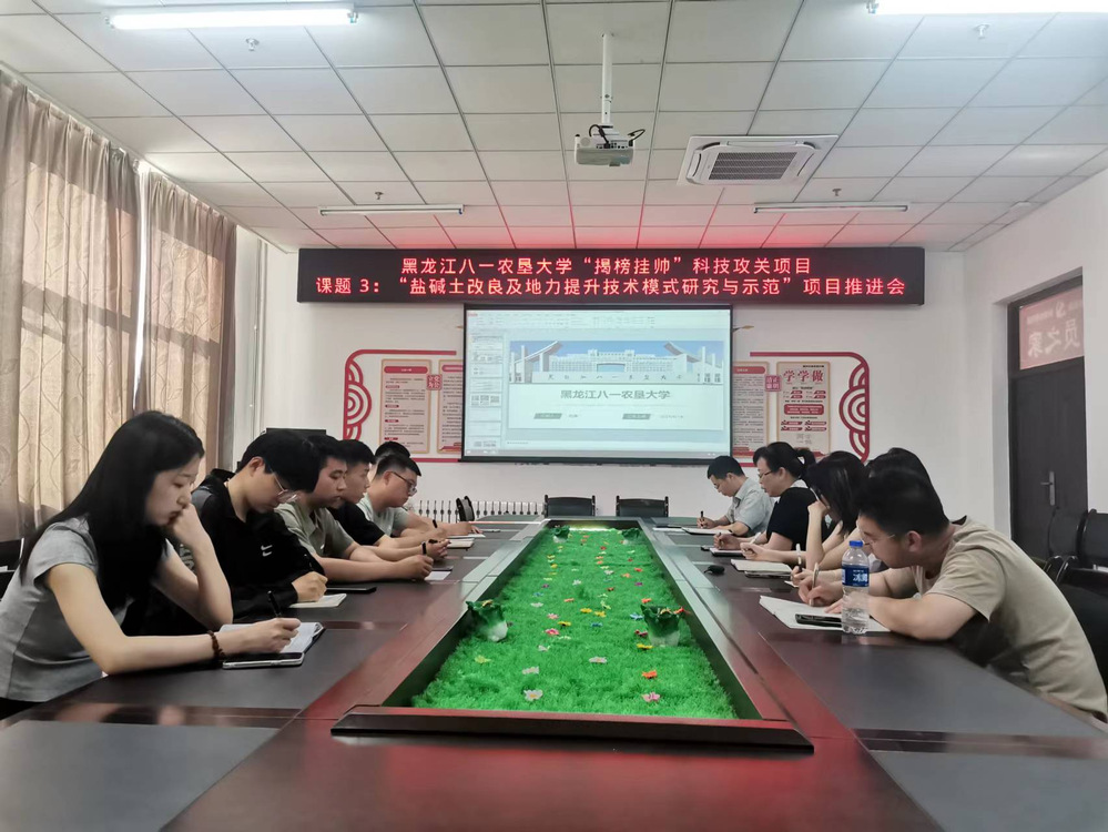6月14日下午,为保证beat365体育官网平台“揭榜挂帅”科技攻关项目顺利开展,课题组在学院123会议室召开了课题3:“盐碱土改良及地力提升技术模式研究与示范”项目推进会。经理晏磊、戴凌燕教授、毕少杰副教授、以及刘涛老师出席此次会议,项目推进会由晏磊经理主持。