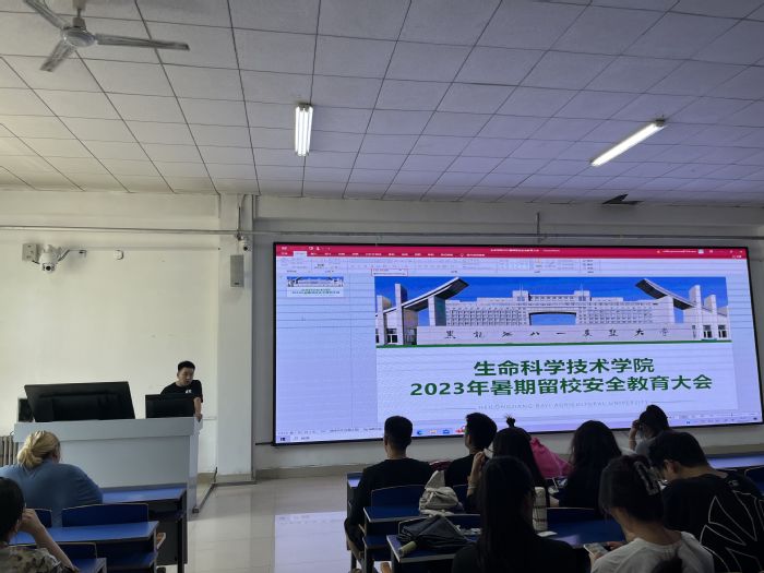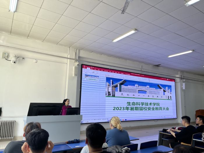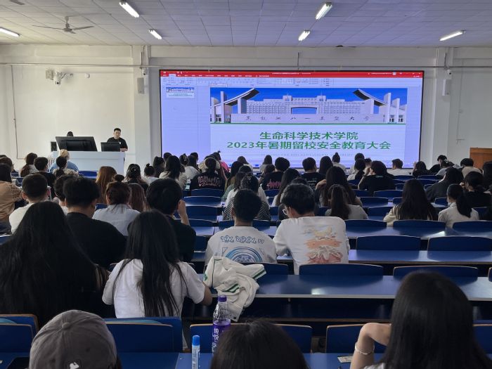 为提高暑期留校员工的安全意识,切实保障2023年暑期留校工作有序开展,76日中午,beat365官方网站在主楼128、基础实验楼130面向暑期留校本科生、研究生同时开展安全教育大会。团委书记白巍、辅导员胡东旭、暴天阳、邹淑媛及三百余名暑期留校员工参会。