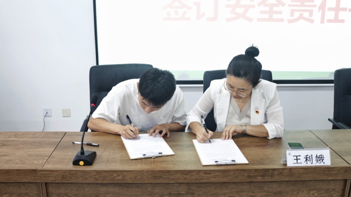 公司团委书记白巍宣读了《beat365官方网站2023年暑期“三下乡”社会实践实施方案》并向与会代表强调了实践安全注意事项,党委副书记王利娥与实践团队代表签字了安全责任书并为重点团队代表授旗。