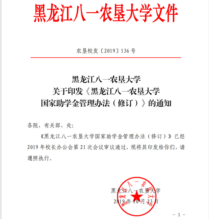 第十五条 本办法自印发之日起执行。原《黑龙江八一农垦大学国家助学金管理暂行办法》(农垦校发〔2007〕68 号)同时废止。
