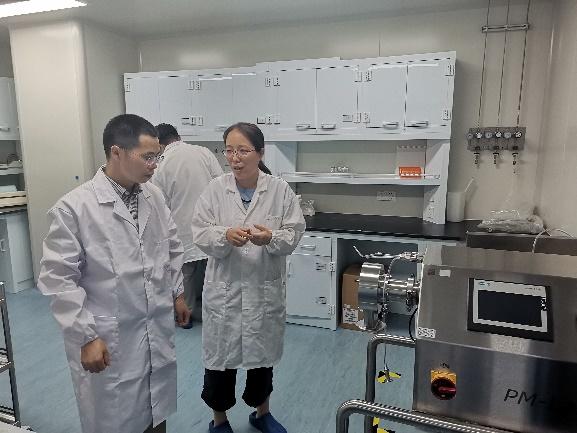 调研期间,晏磊教授实地走访了迈邦生物的研发车间,观摩了解公司产品研发流程,产品范围以及产品工艺方案等的研发情况,校企双方还就相关技术攻坚、成果转化、项目申报、引智引才和员工就业等方面进行深入交流。