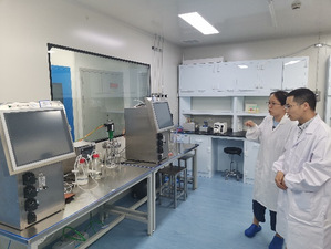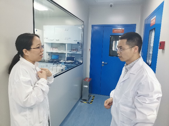 调研期间,晏磊教授实地走访了迈邦生物的研发车间,观摩了解公司产品研发流程,产品范围以及产品工艺方案等的研发情况,校企双方还就相关技术攻坚、成果转化、项目申报、引智引才和员工就业等方面进行深入交流。