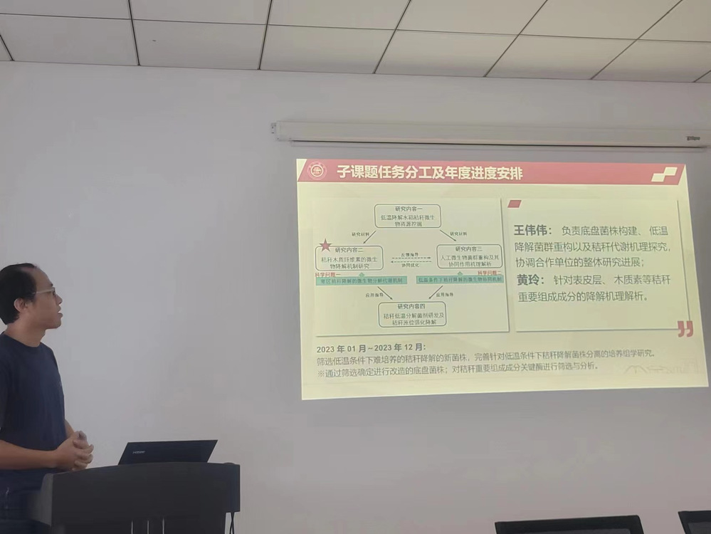 项目负责人王伟东教授表示团队应整合各子课题获得的菌种资源,筛选高效菌种,聚焦攻关方向,持之以恒发力,对照项目计划书的时间表、任务表来执行科技攻关任务,加快项目推进。