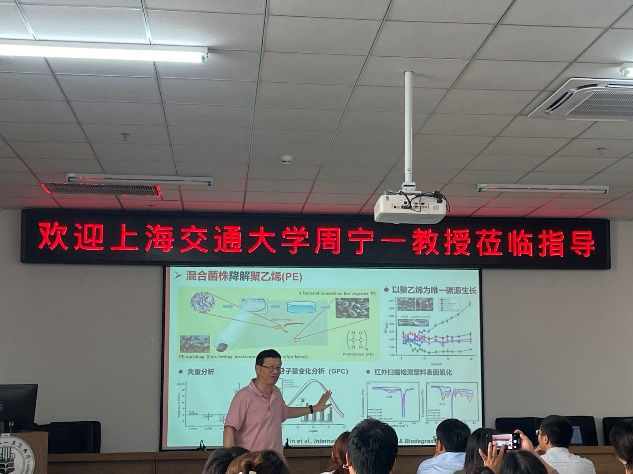 周宁一教授以“环境新污染物的微生物降解”为题,从二甲双胍的生物降解展开,讲述了微生物降解有机物的生理生化、分子生物学等特性以及研究思路。在提问环节,公司老师和同学提出了具有针对性和前瞻性的问题,周宁一教授耐心地一一分享了自己的看法与见解。