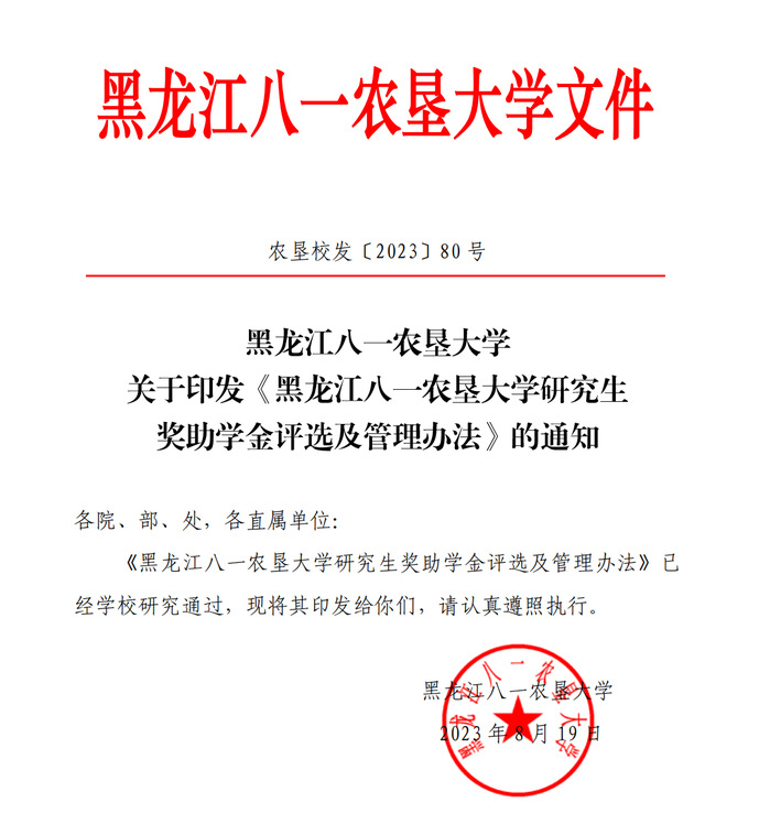 第八条 本实施细则自印发之日起施行,原《黑龙江八一农垦大学关于印发<研究生外国语学习和考试的规定> 4 个文件的通知》(农垦校发〔201876 号)中《beat365体育官网平台研究生国家助学金管理实施细则(试行)》同时废止。)