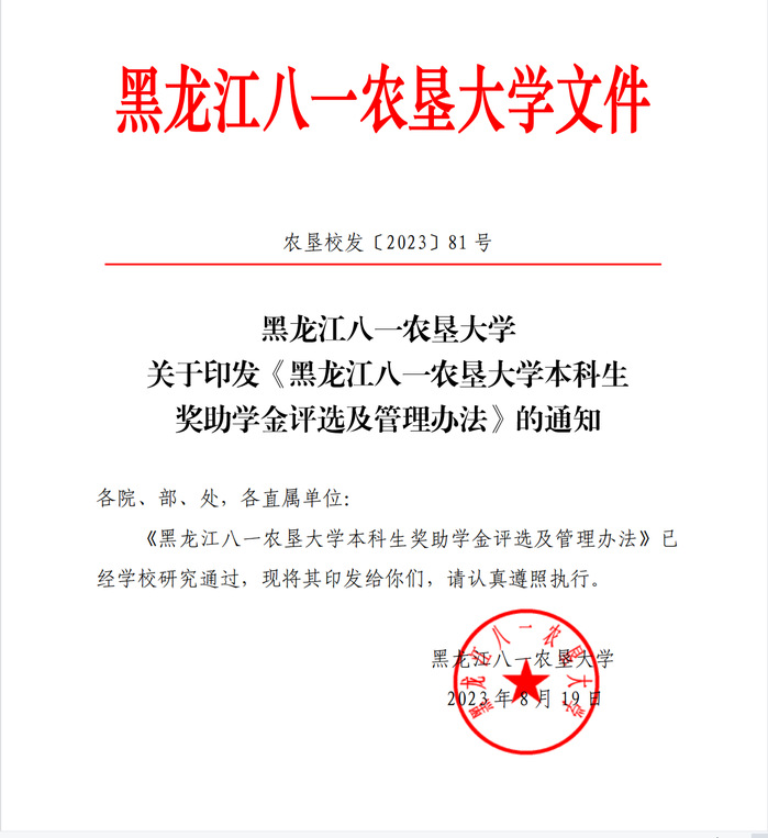 第十六条 本办法自印发之日起施行。《黑龙江八一农垦大学奖助学金评选及管理办法》(农垦校发〔2019〕91 号)、《黑龙江八一农垦大学关于调整本科生国家奖助学金评审工作领导小组及评审委员会的通知》(农垦校发〔2019〕137 号)同时废止。附件: