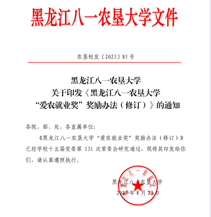 五、相关说明本办法从 2024 届毕业生开始执行,《beat365体育官网平台“爱农就业奖学金”奖励办法(试行)》(农垦校发〔2020〕32 号)同时废止。