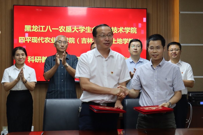 为加强共建、共融和多方位合作,推动学研用协同创新发展,实现互惠共赢,8月24日,公司与四平现代农业科学院就“科研教学工作站”“研究生实践基地”举行揭牌及签约仪式,公司晏磊经理、刘权教授和四平市梨树县政协主席闫鹤、四平现代农业科学院经理杜欣及相关工作人员参加活动。