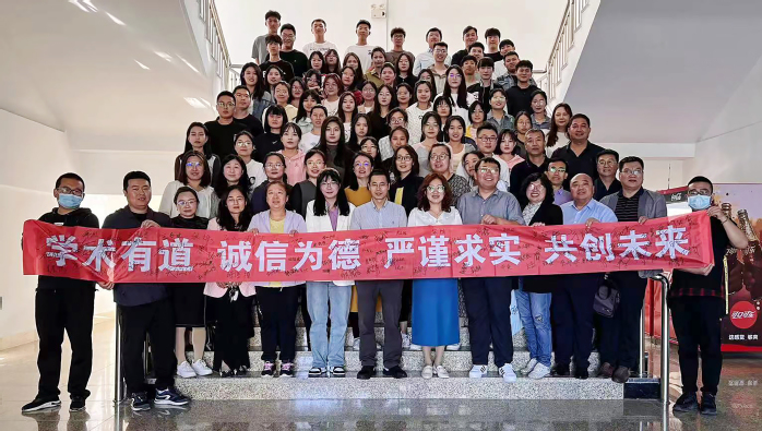 最后,老师和同学们为了表明自己的科研决心和科研态度,在“学术有道、诚信为德、严谨求实、共创未来”的条幅上签下自己的名字。此次会议不仅加深了同学们对研究生阶段学习生活的认识,更是营造了和谐融洽的学术氛围,为研究生高质量培养打下良好基础。