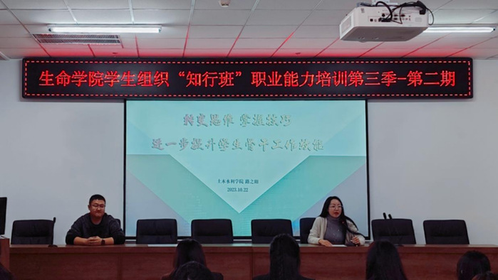 为进一步提升生命学院组织能力作风建设,职业能力建设和团队建设,强化成长服务,卓越有效地完成组织使命,生命学院特于2023年10月22日开设生命学院员工组织“知行班”,开展员工组织工作人员培训会。针对文档的应用、办公软件基础操作流程的学习与规范等进行系统培训。