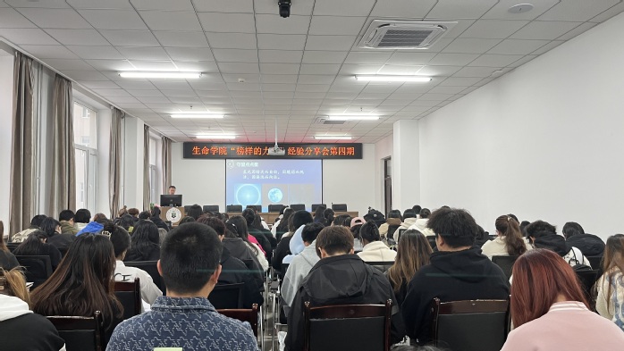 第一位进行分享的是2020级生物科学专业的权泉同学。他向同学们介绍了自己的心路历程,为低年级同学分享如何寻找属于自己的道路,并且如何坚定前行,面临选择时应当机立断,不可模棱两可