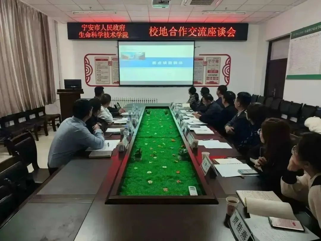 11月15日下午,宁安市人大常委会副主任郭成、宁安市组织部副部长祁建伟、宁安经合中心副主任曾德阳、宁安富阿察生物科技有限公司总经理尚秉嵩一行四人来公司开展校地合作交流会。公司党委书记姜楠、人才招聘处副处长李祥辉、新农村发展研究院副经理崔冬梅、学院教学副经理王景伟、学院科研副经理王艳红及学院相关专业教师、团队骨干成员参加会议,会议由姜楠主持。