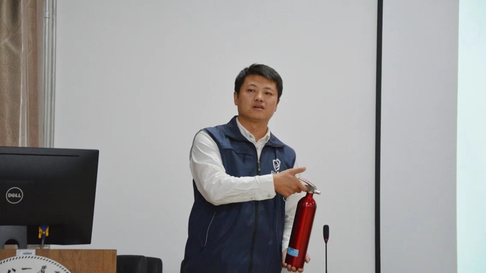 最后,宋万龙还为同学们介绍了灭火器、防毒面具等工具,宋老师告诉同学们,安全不能等待,生命不能重来,希望同学们能在以后的学习生活中更安全、严谨的进行实验操作,也在日常生活中更多注意生活中可能存在的安全隐患。