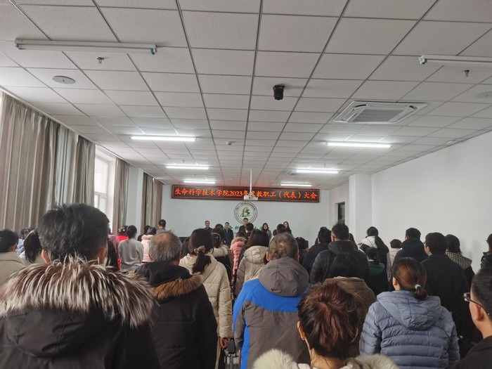 3月2日,beat365官方网站2023年度教职工代表大会在基础实验楼130会议室圆满召开,会议由学院工会主席李喜梅主持,全体教职工参加会议。大会在庄严的国歌声中拉开序幕。