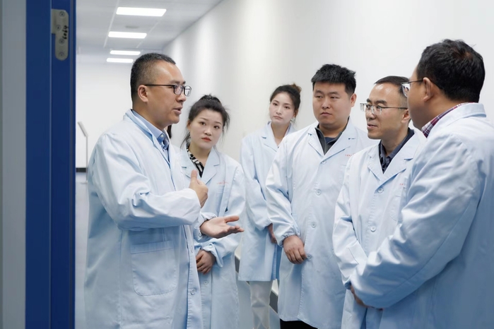 总经理刘乐锋对母校代表团的到来表示热烈欢迎,并带领大家参观了企业的发展历程、研发中心及实验室,详尽展示了公司在干细胞基因工程领域的前沿技术与研究成果。他表示企业高度认同并珍视与母校的合作关系,希望通过此次交流活动,进一步推动双方在技术研发、人才培养、资源共享等方面的深度合作。